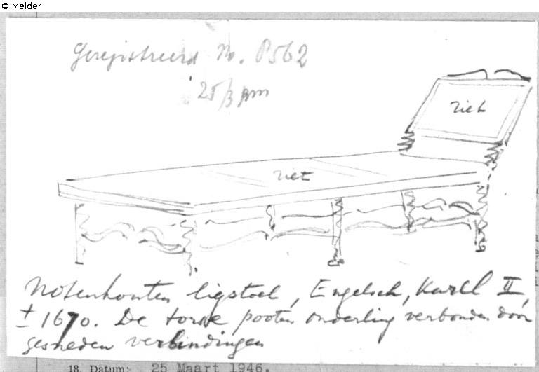 source: Algemeen Politieblad van het Koninkrijk der Nederlanden, Jg. 95, Nr. 34, 30. November 1946 publizierten Liste 719 „Te ‘s-Gravenhage ontvreemd in 1943/1944, hollandsche teekeningen, t. w.“; Intern Aangifte Formulier vom 25.3.1946, BArch Koblenz B 323/2 fol. 158 mit eigenhändiger Skizze von F. Lugt;