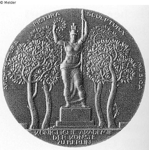 Rs.: Standbild der Pallas Athene, von Bäumen ungeben; Umschrift: ARCHITECTURA PICTURA SCULPTURA MUSICA / KÖNIGLICHE AKADEMIE / DER KÜNSTE ZU BERLIN