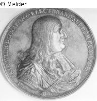 Silver medal, 1663 h.Iun. Johann Höhn the Younger, Danzig. Front: Friedrich Wilh. of Brandenburg (Great Elector) profile bust with straight long hair. Rear: Eagle with insignia and view of Königsberg. (Medal for Prussia. Hereditary Homage). At the edge scraped and a soldered joint (?).