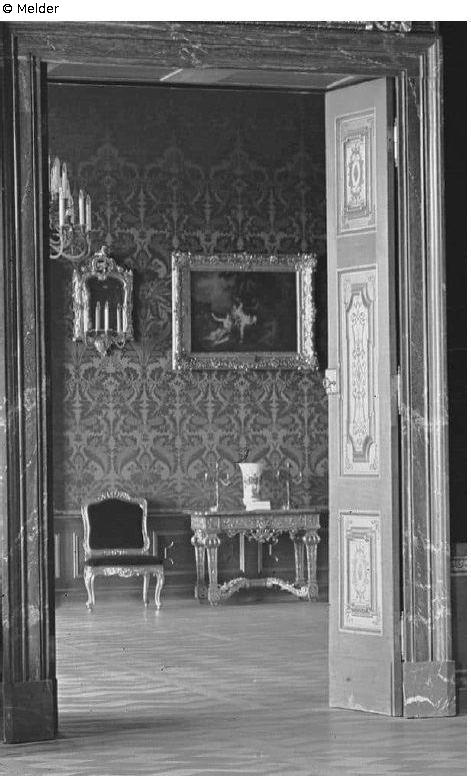 Listed in inventory no. 1 of 31 January 1920, as part of the 1924 settlement agreement between the Free State of Saxony and the former royal house, the rooms marked in red assigned to the state; On the list of art objects of particular value, drawn up by the head of the revenue office, Hugo Bahr, and the castle administrator Johannes Bibrach on 6 May 1942 ‘4 Gemälde’ listed, which were to be salvaged in the '1.Kaffeezimmer'. In the ‘Wettinzimmer’, 6 paintings are mentioned; the two series with a total of 10 mythological paintings were removed during the transports to Schleinitz Castle near Meissen on 16 and 17 August 1943; According to the records, they were lost at the relocation site.