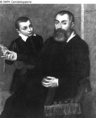 Panel painting: Depiction: Father and son or sons (family group); Son; Father; Father and son; Signature: Upper right: (.......); Dimensions: 99.5 x 82.5 cm