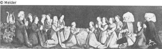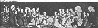 Panel painting: Predella panel: representation of an anonymous historical person in a group, in a group portrait; group
