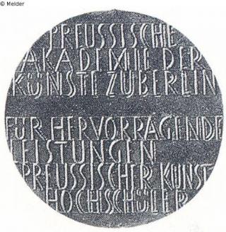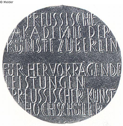 Rs.: Inschrift: PREUSSISCHE AKADEMIE DER KÜNSTE ZU BERLIN FÜR HERVORRAGENDE LEISTUNGEN PREUSSISCHER KUNSTHOCHSCHÜLER (Signatur) L G