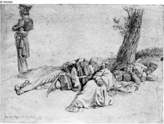 Verso: Studien von mehreren Soldaten. Signatur: Links unten: den 30.Maj nach der Natur gez. Feder in Braun.