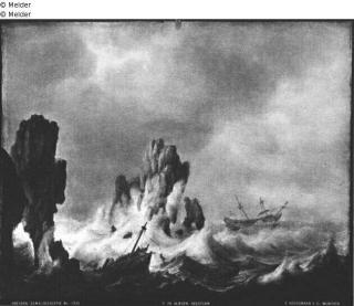 Signed in the center, left on the rock: S DE VLIEGER.