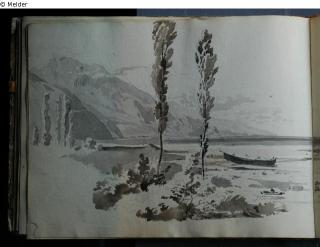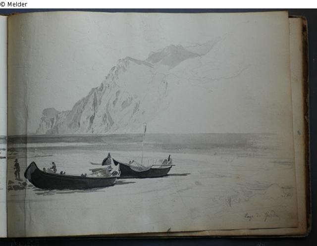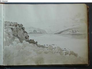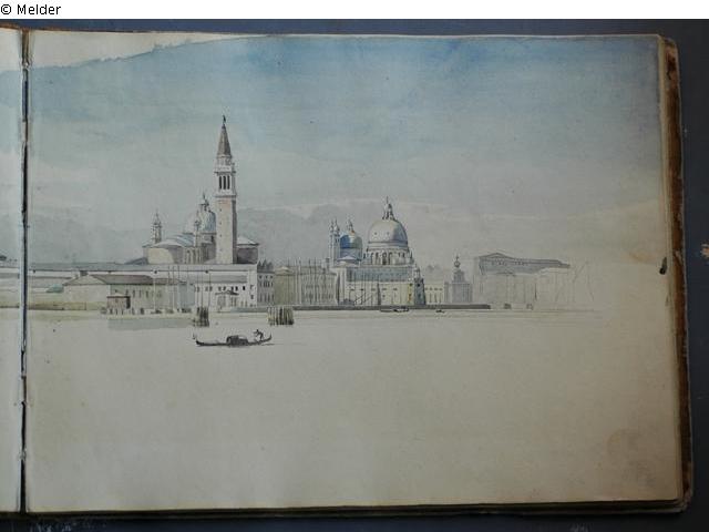 Motive von den oberitalienischen Seen und aus Venedig; in braunem Pappband mit braunem Lederrücken und marmoriertem Vorsatzpapier; überwiegend Landschaftsdarstellungen.