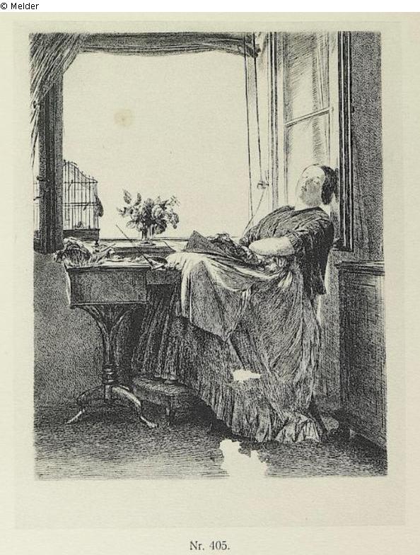Elfried Bock, Adolph Menzel - Das Graphische Werk, Berlin, 1923, Nr. 1134 II; Auktionskatalog C.G. Boerner u. Paul Graupe, Die Menzel Sammlung Ginsberg, Berlin, Versteigerung am 5.12.1930; Auktionskatalog Max Perl, Bücher des 15. - 20. Jahrh., Berolinensien, Alte u. Moderne Graphik darunter eine Menzel-Sammlung, Handzeichnungen, Gemälde, Kunstgewerbe, Berlin, Versteigerung am 6./7.12.1935 (Katalog 191); Abschrift des Einlieferungsbescheids Nr.122 Max Perl, Berlin, LAB, A Rep. 243-04 Nr.2, Nr. 97; Inventarbuch, Museum für Deutsche Geschichte, 1957, Nr.100