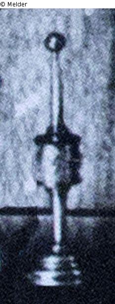 Spice tower with foot, filigree cylinder as spice box, above it long spire with sphere and flag.