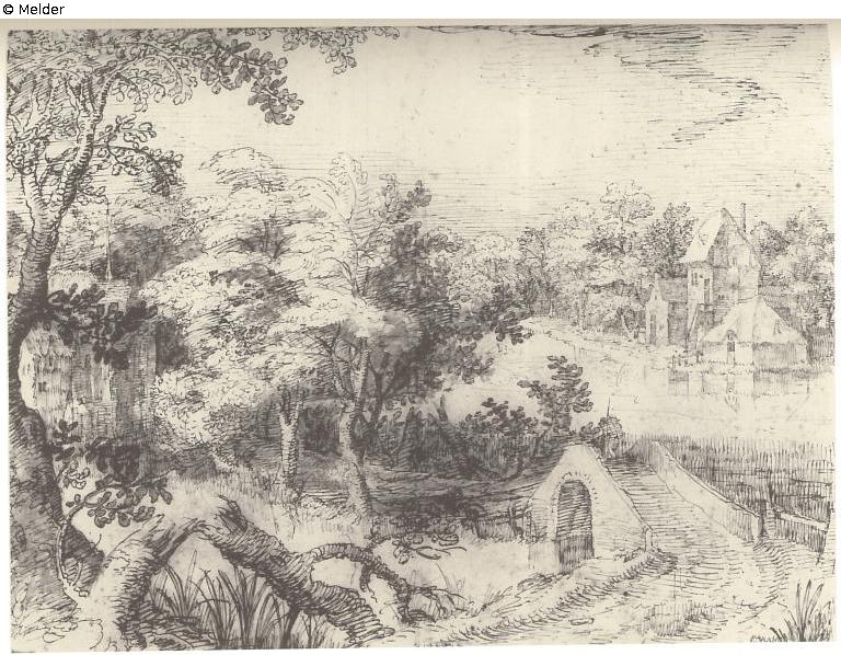 et Pont au premier plan. Plume et léger lavis d’encre de Chine: H. 0.245, L. 0.320. Appartient à M. Frltz Lugt, Maartensdijk (Utrecht)“; Algemeen Politieblad van het Koninkrijk der Nederlanden, Jg. 95, Nr. 34, 30.11.1946, S. 385-387, dort: Lijst 719: Te ‘s-Gravenhage ontvreemd in 1943/1944, hollandsche teekeningen; Karel G. Boon (Hrsg.): The Netherlandish and German Drawings of the XVth and XVIth centuries of the Frits Lugt Collection, Vol. II, Paris 1992, hier: “Lost Drawings”, S. 66, Nr. XXVI with image. According to Boons: pen in ink (grey?)