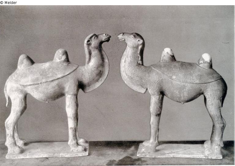 Fuchs text for plate 53: „Zwei stehende Kamele. Gelblichweißer Tonscherben. Cremefarben glasiert. Höhe 38 cm.“