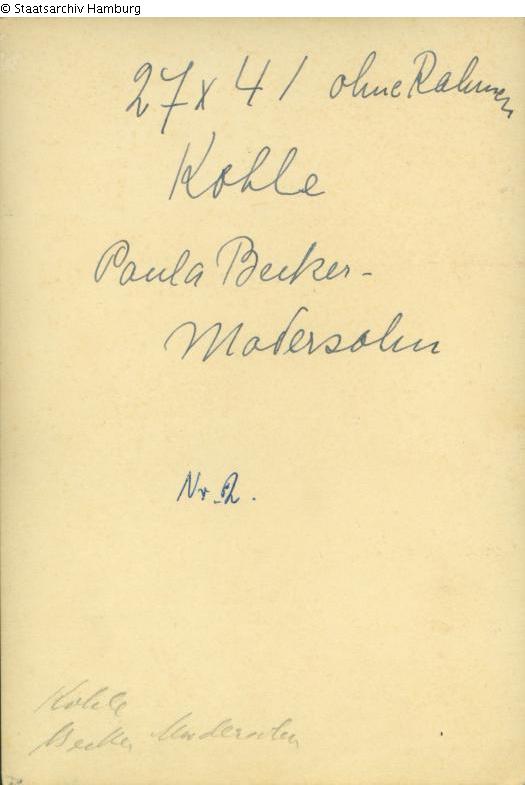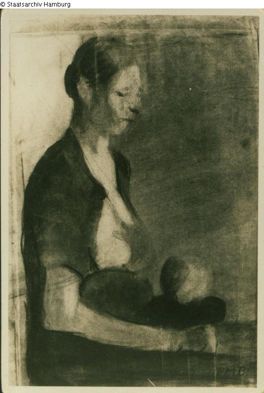 Search Request | Object report Untitled, portrait Lost Art-ID599155 Previous Next TitleUntitled, portraitPlace of manufactureWorpswede Dating1907 (vor)Object typeDrawingGroup of reported objectsGraphicMaterial / TechniqueCharcoal / drawn Height 41.00 cm Width 27.00 cm Description Mother with child after nursing. Read more Read less Provenance Lost after the family fled Hamburg in 1936, not mentioned in the auction of the apartment's inventory. Read more Read less Literature / Source Staatsarchiv Hamburg, 213-13 Landgericht Hamburg - Wiedergutmachung, Nr. 29470. Read more Read less Published since19.04.2022 Contact Please contact the German Lost Art Foundation.