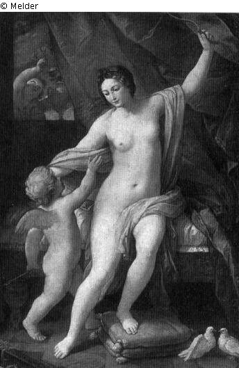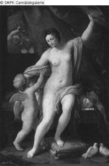 Panel painting: depiction: Venus punishes Cupido : to grasp something, to grab; punishment; Cupido : to grip; to grasp.