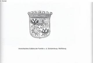 Count von der Schulenburg family, before 1942 Wolfsburg Castle (until 1932 Gardelegen County, Province of Saxony; then Gifhorn County, Province of Hanover; today Wolfsburg City); then moved to the newly built Neumühle Castle near Tangeln, municipality of Beetzendorf in the Altmark County of Salzwedel.