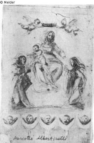 Search Request Being enthroned Madonna revered by two saints Artist / Creator Albertinelli, Mariotto di Biagio di Bindo Object type Drawing Material / TechniqueRed chalk / drawn (pen-and-ink drawing) ; washedLost Art-ID121268
