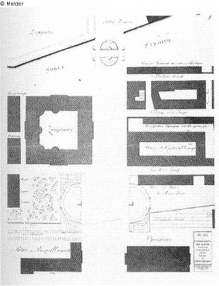 Search Request 3 Blätter: Grundriß, Aufriß und Querschnitt zu einem fürstlichen Landpalast Artist / Creator Gentz, Heinrich Object type Drawing Material / Techniquewashed ; drawn (pen-and-ink drawing)Lost Art-ID314609
