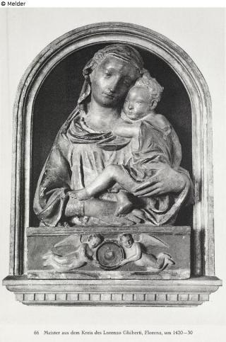 Search Request Madonna with child Artist / Creator Ghiberti, Lorenzo (Meister aus dem Kreis des Lorenzo Ghiberti) Object type Sculpture Material / TechniqueCeramics (Terracotta)Lost Art-ID570677