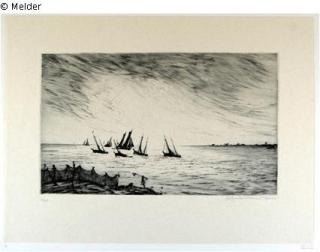 Found-Object Report Sailing boats in the estuary Artist / Creator Goldschmitt, Bruno Object type Print Material / TechniquePaper / printed (etching)Lost Art-ID429458