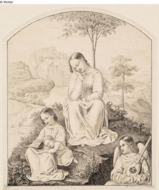 Found-Object Report Mary and child and two angels (?) Artist / Creator Grimm, Ludwig Object type Drawing Material / TechniquePaper ; Colour black ; Ink grey / drawn (pen-and-ink drawing...Lost Art-ID599823