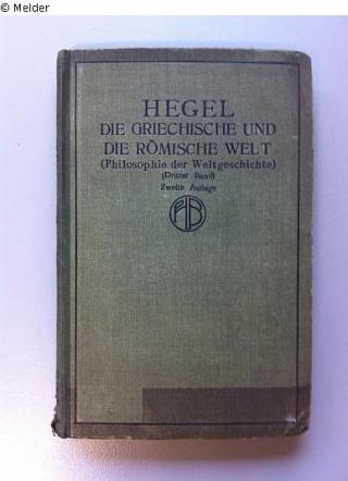 Found-Object Report Die griechische und die römische Welt. Auf Grund des aufbehaltenen handschriftlichen Materials. (2. Auflage) Reihe: Philosophie der Weltgeschichte, Band 3. (Der philosophischen Bibliothek Band 171c.) Author Hegel, Georg Wilhelm Friedrich Editor Lasson, Georg Publisher Felix Meiner Object type Book Lost Art-ID520846
