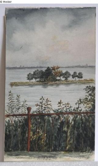 Found-Object Report View from the height of the sharp mountain on Lindwerder in Lake Tegel Artist / Creator Jacobsen, Emil Object type Watercolour Material / TechniquePaper ; Watercolour / watercolouredLost Art-ID484656