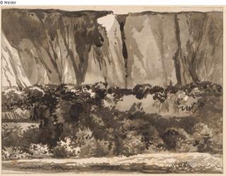 Found-Object Report Steep slope, partly overgrown, bushes below Artist / Creator Kobell, Franz Innocenz Josef Object type Drawing Material / TechniquePaper ; Ink brown-grey / drawn ; washedLost Art-ID601677