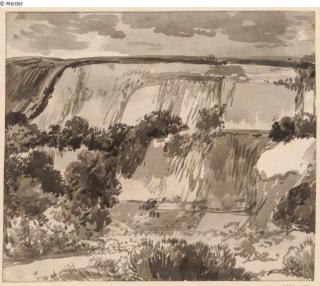 Found-Object Report Waterfall next to ruins, front left observer Artist / Creator Kobell, Franz Innocenz Josef Object type Drawing Material / TechniqueColour black, brown ; Graphite / drawn (pen-and-ink drawing)...Lost Art-ID579261