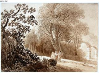 Found-Object Report Women under trees, right arched ruins Artist / Creator Kobell, Franz Innocenz Josef Object type Drawing Material / TechniquePencil ; Graphite ; Ink sepia, brown / drawn ; drawn (brush)...Lost Art-ID579263