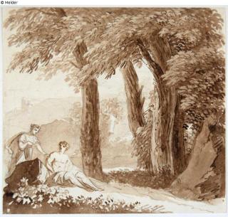 Found-Object Report Resting couple under trees, left behind mountain castle Artist / Creator Kobell, Franz Innocenz Josef Object type Drawing Material / TechniqueGraphite ; Colour sepia / drawn (pen-and-ink drawing)...Lost Art-ID579264