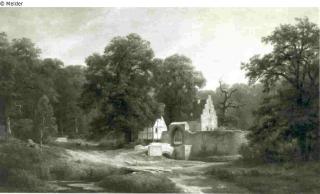 Found-Object Report Forest landscape with farm Artist / Creator Lessing, Karl Friedrich Object type Painting Material / TechniqueOil ; Canvas / paintedLost Art-ID218890