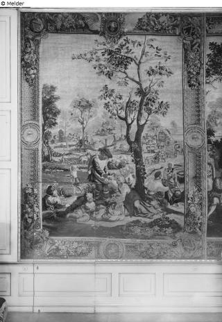 Search Request Tapestry, month of March, zodiac sign Aries from the series "Les mois Lucas" Mois Lucas. Mars ou La Pêche et le Jardinage Artist / Creator Audran, Jean (attributed to) Manufaktur Manufacture Royale des Gobelins Paris, Atelier de Hautelisse Object type Consumer / interior textiles Material / TechniqueFabric (Wool) ; Fabric (Silk) / Tapestry (Hautelisse)Lost Art-ID628697