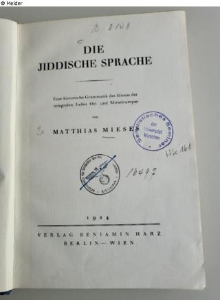 Found-Object Report Die Jiddische Sprache. Author Mieses, M. Publisher Harz Object type Book Lost Art-ID632682