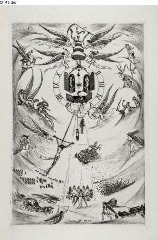 Found-Object Report World time clock ( 12 in the afternoon) Artist / Creator Nägele, Reinhold Object type Print Material / TechniquePaper (Handmade) / printed (etching)Lost Art-ID319052