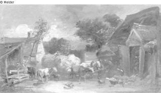 Found-Object Report Farm with harvest wagon Artist / Creator Schleich, Eduard (der Ältere) Object type Painting Material / TechniqueOil ; Hardboard / paintedLost Art-ID565742