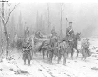 Found-Object Report Winter landscape with three Ulans and two imprison Artist / Creator Sell, Christian Object type Painting Material / TechniqueOil ; Canvas / paintedLost Art-ID219716