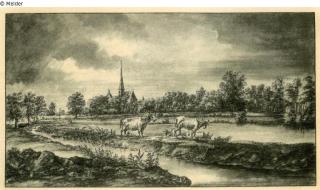 Search Request Landscape with cows by a canal Artist / Creator Uden, Lucas van Object type Watercolour Material / Techniquewatercoloured ; drawn (pen-and-ink drawing)Lost Art-ID518825