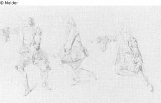 Search Request Three studies of two sitting and a kneeling gentleman Artist / Creator Watteau, Antoine Object type Drawing Material / TechniqueRed chalk / drawnLost Art-ID121204