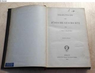 Found-Object Report Israelitische und jüdische Geschichte 5. Ausgabe Author Wellhausen, J. Publisher Verlag von Georg Reimer Object type Book Lost Art-ID600632