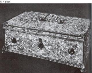 Search Request Schmuckkasette des Herzog Albrecht von Preußen Object type Crafts and other folk arts Material / TechniqueMother-of-pearl ; Metal (Silver) / gildedLost Art-ID405975