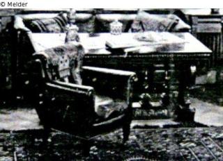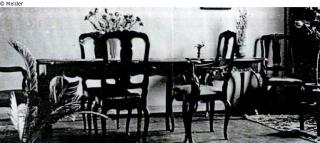 Search Request Esszimmereinrichtung: Tisch, zwei Sessel, sechs Stühle, Büffetschrank und zwei Abstelltische Object type Furniture Material / TechniqueWood (Walnut)Lost Art-ID477404