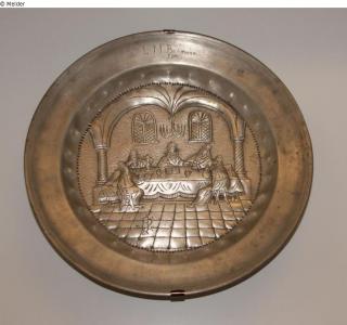 Found-Object Report Seder Plate Artist / Creator Johann Klingling, Frankfurt /Main (Zinngießer Marke) Object type Vessel Material / TechniqueMetal (Pewter) / repoussé ; engravedLost Art-ID596477