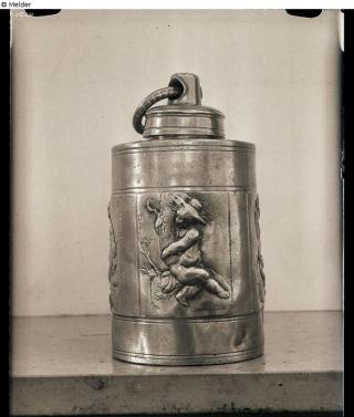 Found-Object Report Screw-top bottle with relief figures Artist / Creator Schiller, Jeronimus Object type Vessel Material / TechniqueMetal (Pewter) / repoussé [?]Lost Art-ID626882