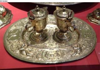 Found-Object Report Serving tray with two measuring jugs Artist / Creator Stenglin, Esaias Object type Crafts and other folk arts Material / TechniqueMetal (Silver) / repousséLost Art-ID626885