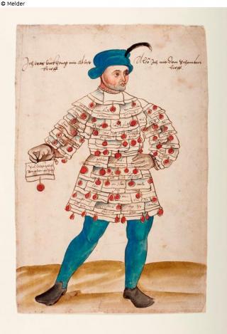 restituted Found-Object Report Runner with costume from indulgence letters Artist / Creator Unknown Object type Watercolour Material / TechniqueWatercolour ; Paper / watercoloured ; drawn (pen-and-ink...Lost Art-ID568272