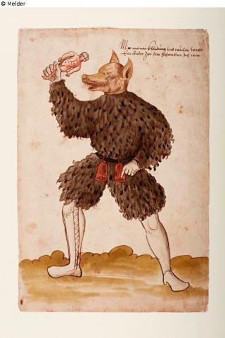 restituted Found-Object Report Runner with costume of hairy fur with wolf head Artist / Creator Unknown Object type Watercolour Material / TechniqueWatercolour / watercoloured ; heightened gold ; drawn (pen...Lost Art-ID568274