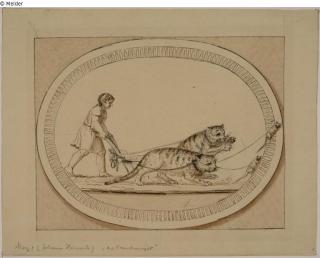 Found-Object Report Boy with two cats and two mouses in front of the plough Artist / Creator Meyer, Johann Heinrich Object type Drawing Material / TechniquePaper ; Colour grey, brown ; Graphite / drawn ; drawn (brush...Lost Art-ID583856