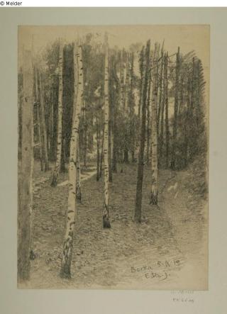 Found-Object Report Light forest with birches Artist / Creator Döpler, Emil (the younger) Object type Drawing Material / TechniquePaper ; Graphite / drawn ; blurredLost Art-ID589953