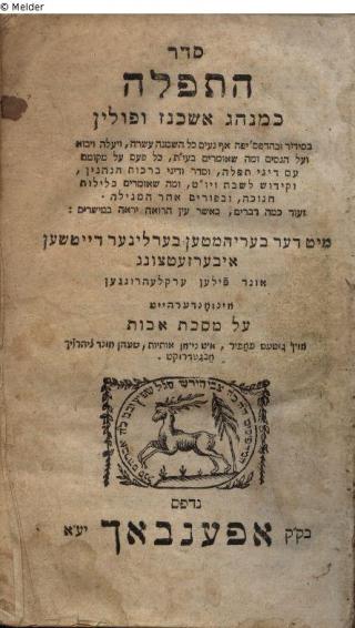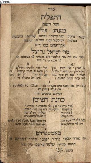Found-Object Report Seder tefilot ke-minhag ashkenaz we-polyn (Gebetbuch nach deutschem und polnischem Brauch) Printer Zvi Hirsh SG"L Spitz (?) und sein Sohn Avraham SG"L Object type Book Lost Art-ID304019
