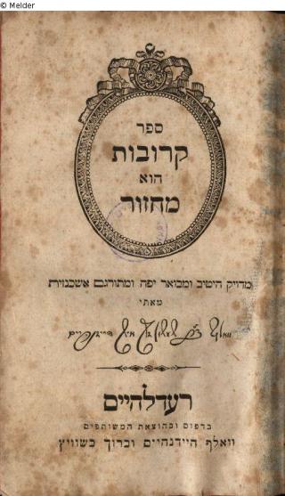 Found-Object Report Seder krovot hu mahzor (Machsor) Printer Wolf Heidenheim und Baruch M. Baschwitz Object type Book Lost Art-ID304018