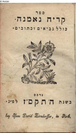 Found-Object Report Sefer keriah ne'amnah kolal nevi'im u-ketuvim Printer Isaac David Zirndorffer Object type Book Lost Art-ID304020