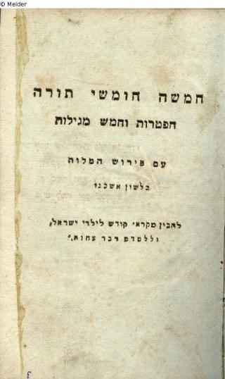 Found-Object Report Ha-mishnah humshei torah, haftarot we-hamesh megilot im pirush ha-malot be-lashon ashkenaz (Die Mischna zum Pentateuch mit Haftarot und den fünf Megilot mit Kommentar in deutscher Sprache) Object type Book Lost Art-ID304025